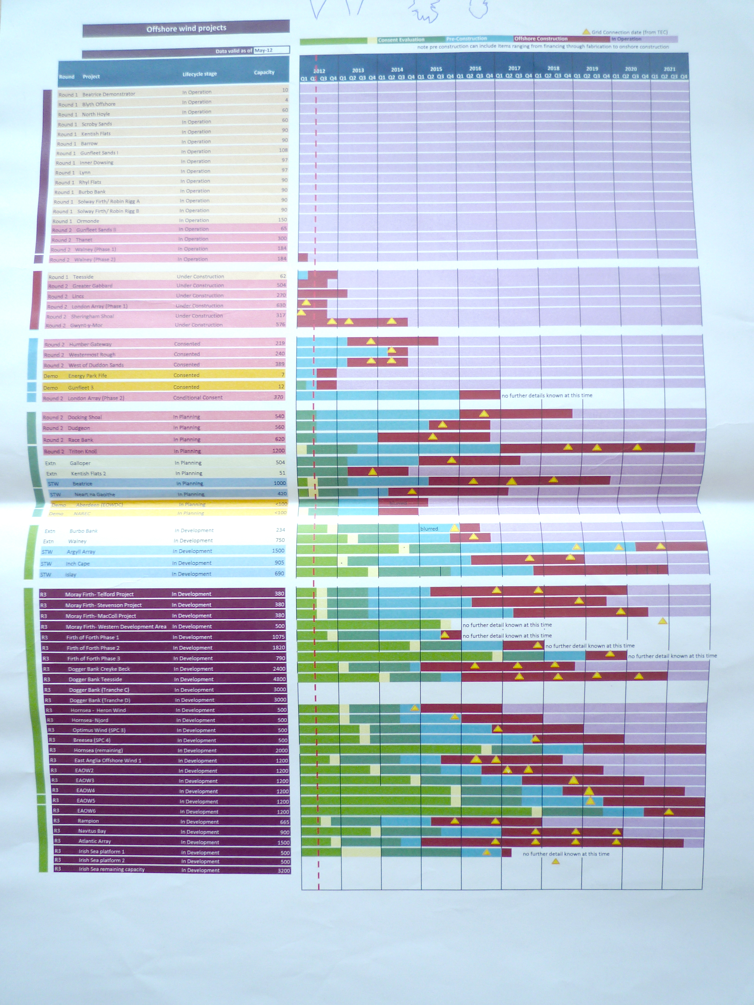 A folded map that details all existing and proposed UK offshore wind farms. Each project is colour coded by stage of development, with detailed information including the developer, output capacity and distance from shore. Updated annually, this invaluable reference is consistently one of RenewableUK's most requested documents.